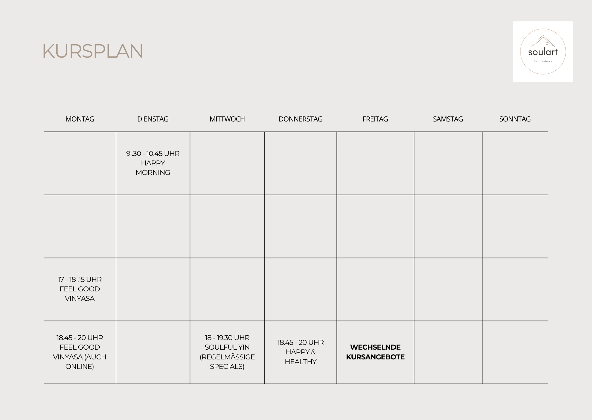 Hier findest du deinen Kursplan und alle aktuellen Kurse und Kurszeiten